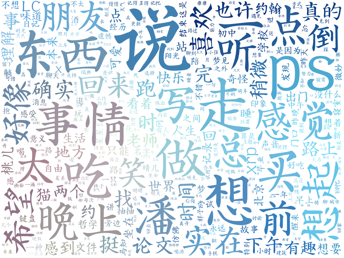 看到Joseph的博客的时候,她已经将近一年半没有写过日记了。其实这是对她来说挺重要的一年半,曾经见到什么、想到什么却完全没有留下任何痕迹——她是怎么成为如今的自己的呢?两个截然不同的自我断裂在时间的两头。